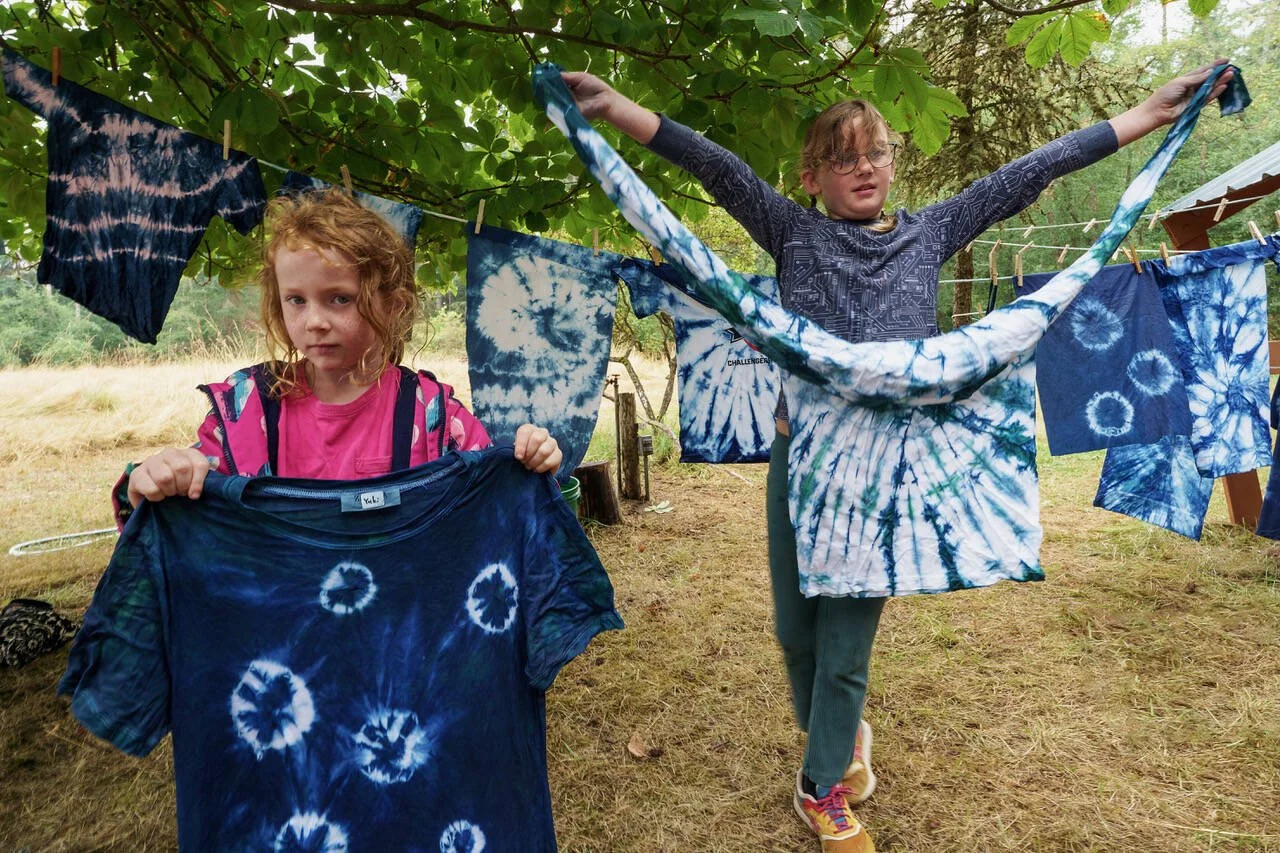 On an unusually drizzly summer day at Full Moon Rising Farm in Freeland, kids could be found dyeing pieces of fabric, building boats to float, running through the woods and playing with farm animals.